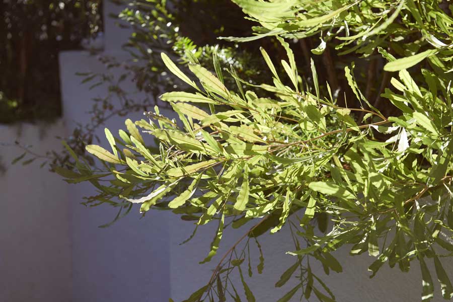 A la hora de seleccionar las plantas, elegimos variedades autóctonas que atraen a los pájaros. Se buscaba un efecto silvestre, que nos alejara del típico seto artificial. Junto al árbol de la lima, añadimos una maceta grande con aromáticas para cocinar.