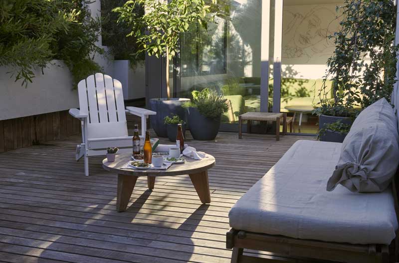 Con los elementos decorativos reforzamos la idea de sencillez y modernidad, eligiendo materiales sobrios que se dejan cambiar por la intemperie, como la madera no barnizada, el cemento natural y el lino. Se evitó saturar el espacio con objetos sin funcionalidad o muebles voluminosos.