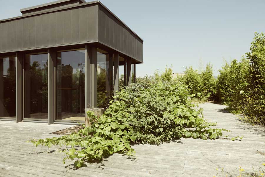 Es un proyecto que nos permitió poner en práctica y enseñar nuestra apuesta por la 5ª fachada. Planteamos todos los elementos en la fase de proyecto arquitectónico de LCT, con el módulo en fabricación. Pudimos comprobar el peso que podía soportar la estructura antes de su colocación sobre el edificio existente. También estudiamos cómo funcionarían las especies vegetales, la ocupación del suelo y los usos circulaciones, aspectos que condicionaron la forma final.
